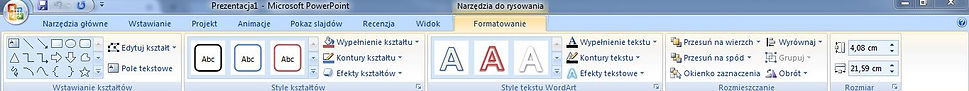 Zestaw narzędzi pozwalających na zaawansowane formatowanie tekstu i kształtów. Dzieli się na 5 podkategorii: